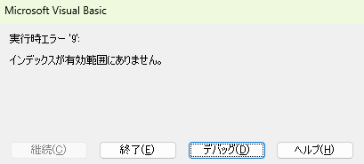 【第3位】実行時エラー ‘9’: インデックスが有効範囲にありません