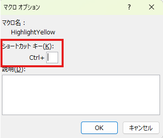 「マクロ オプション」という小さなウィンドウが表示されます。
