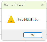 MsgBox "キャンセルしました。", vbExclamation