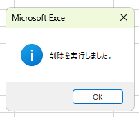 MsgBox "削除を実行しました。", vbInformation