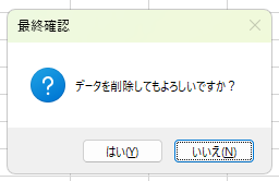 rc = MsgBox("データを削除してもよろしいですか?", vbYesNo + vbQuestion + vbDefaultButton2, "最終確認")